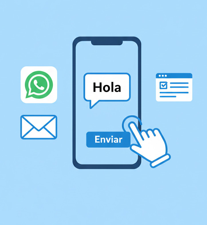 Estamos a un clic de distancia: Contáctanos en cualquier momento de la forma que prefieras: envíanos un email, escríbenos directamente por WhatsApp o completa nuestro formulario de contacto.